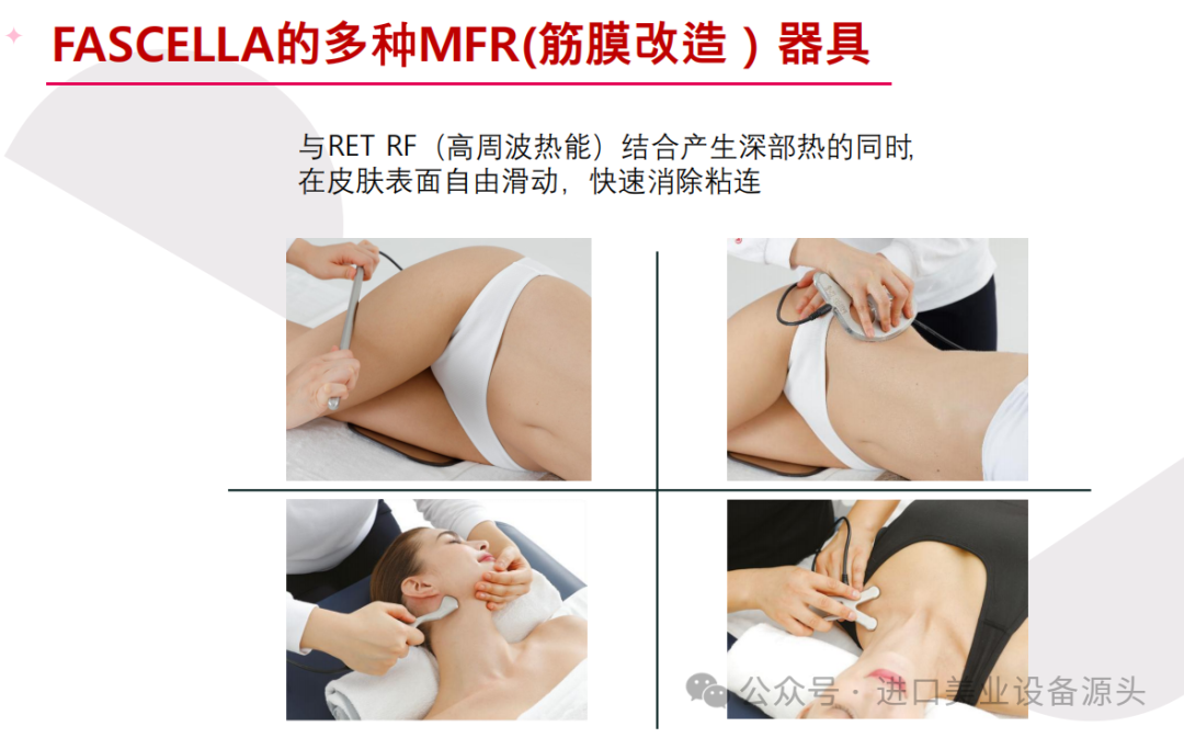MFR器具、魔法手套)的 FASCELLA能量去除因筋膜粘连而积累的脂肪层,提高下垂肌肤弹性,同时促进代谢物排出和血液及营养素供给,有效分解脂肪、改善肤色。