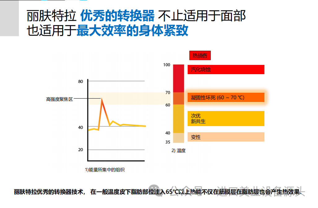 利用丽肤特拉的热扩散技术无痛的在皮下脂肪层可有效的注入能量。